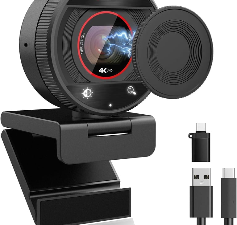 Eleva la qualità delle tue immagini con la risoluzione Ultra HD 4K e goditi movimenti incredibilmente fluidi grazie ai 1080P@60FPS. Perfetta per streaming professionali, videochiamate nitide e riunioni online. Il sensore avanzato garantisce prestazioni ottimali anche con scarsa luce, l'ideale per gamer, creator e professionisti. 【Autofocus PDAF Superveloce】 Cattura ogni dettaglio in un istante. La tecnologia di messa a fuoco automatica (Phase Detection) regola la nitidezza in soli 0,3 secondi. L'esposizione automatica assicura video 1080p/60fps cristallini anche controluce. 【Privacy Garantita con Copriobiettivo Magnetico】 La tua privacy è la nostra priorità. La webcam 873max include un copriobiettivo magnetico, facile da applicare e rimuovere per bloccare efficacemente sguardi indiscreti. 【Doppio Microfono AI con Riduzione del Rumore】 Dì addio ai rumori di fondo. I due microfoni con cancellazione del rumore basata su IA eliminano tastiera, traffico e altri suoni, garantendo un audio cristallino per riunioni, podcast e lezioni online. Nessun microfono esterno necessario! 【Plug & Play Immediato】 Pronto in meno di un minuto! Questa webcam è Plug & Play e si collega senza driver tramite USB-A o USB-C (adattatore incluso). Il supporto flessibile si adatta a laptop, monitor, treppiedi o desktop, garantendo la massima versatilità.